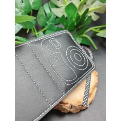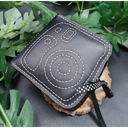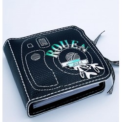 Structure d'album en skaï noir brodé en fil blanc, intérieur feutrine noir,