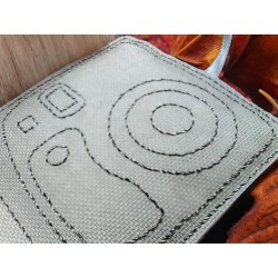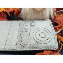 Skaï effet tissu gris / fil chiné noir , intérieur feutrine noir