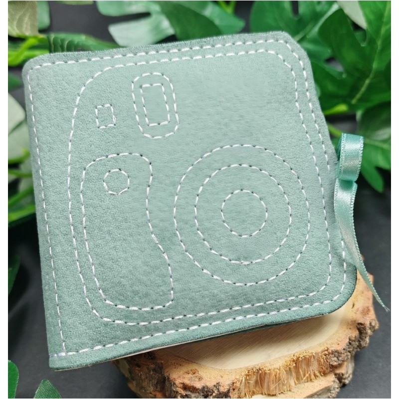 Mini Instax 09 "suédine vert d'eau /fil blanc"