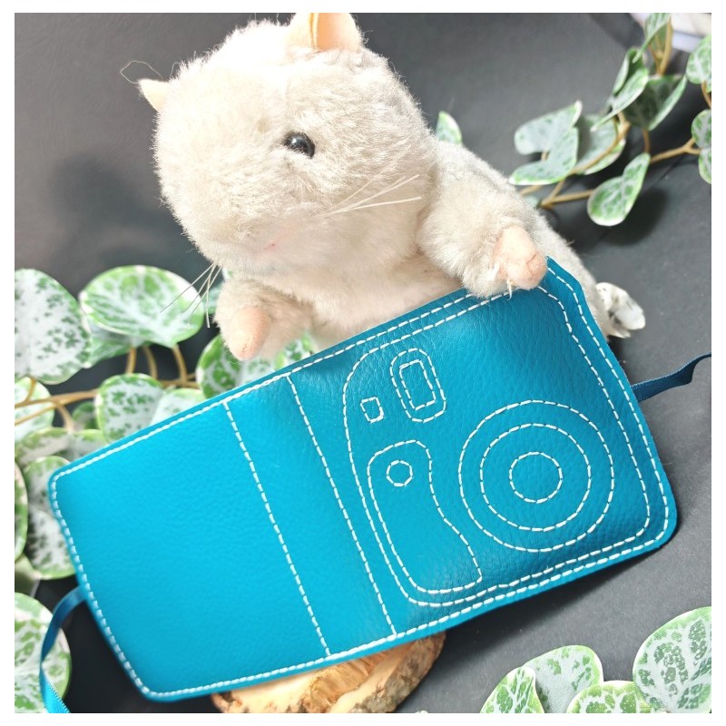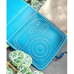 Mini Instax 09 "Skaï bleu turquois /fil blanc"