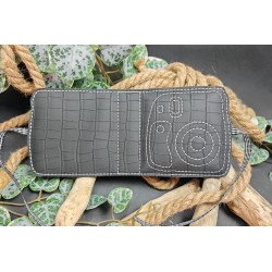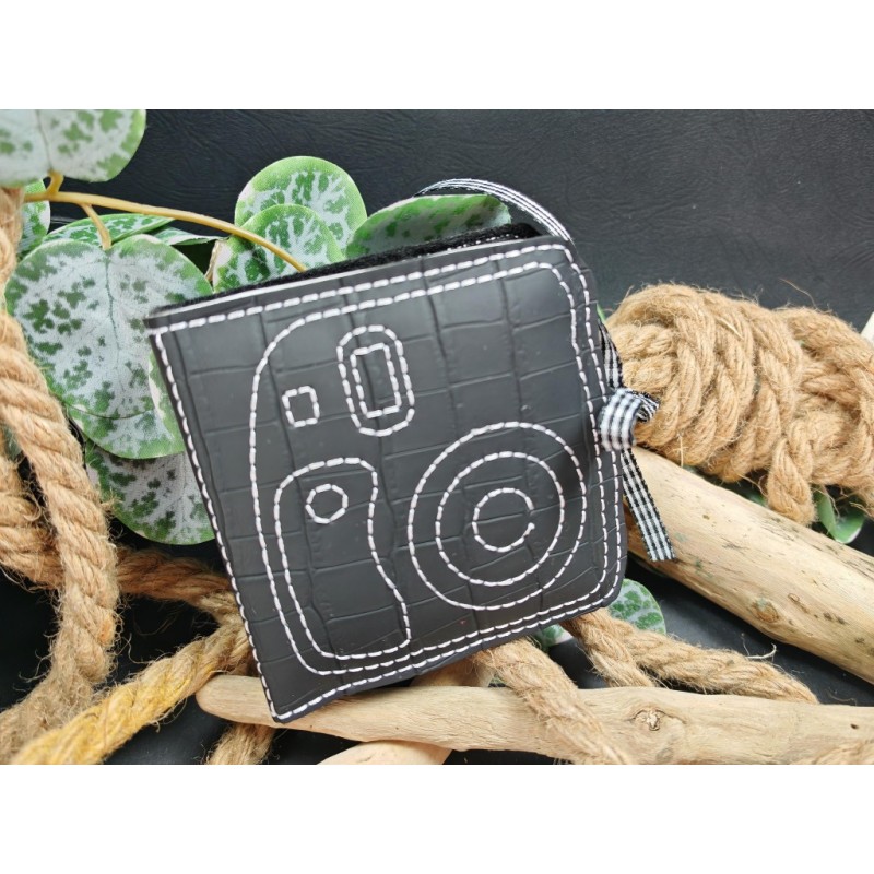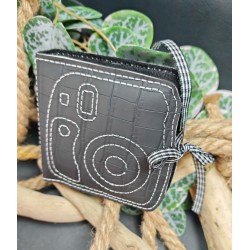 Mini Instax 18 "Skaï noir croco /fil blanc"