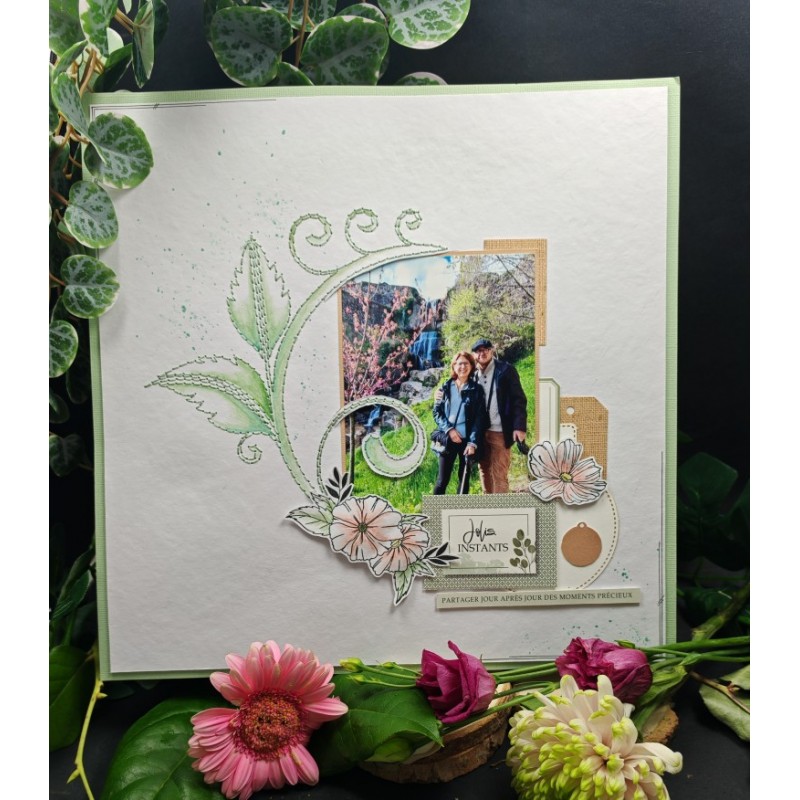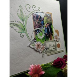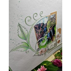Page brodée feuillage , réalisé avec un fil vert d'eau,