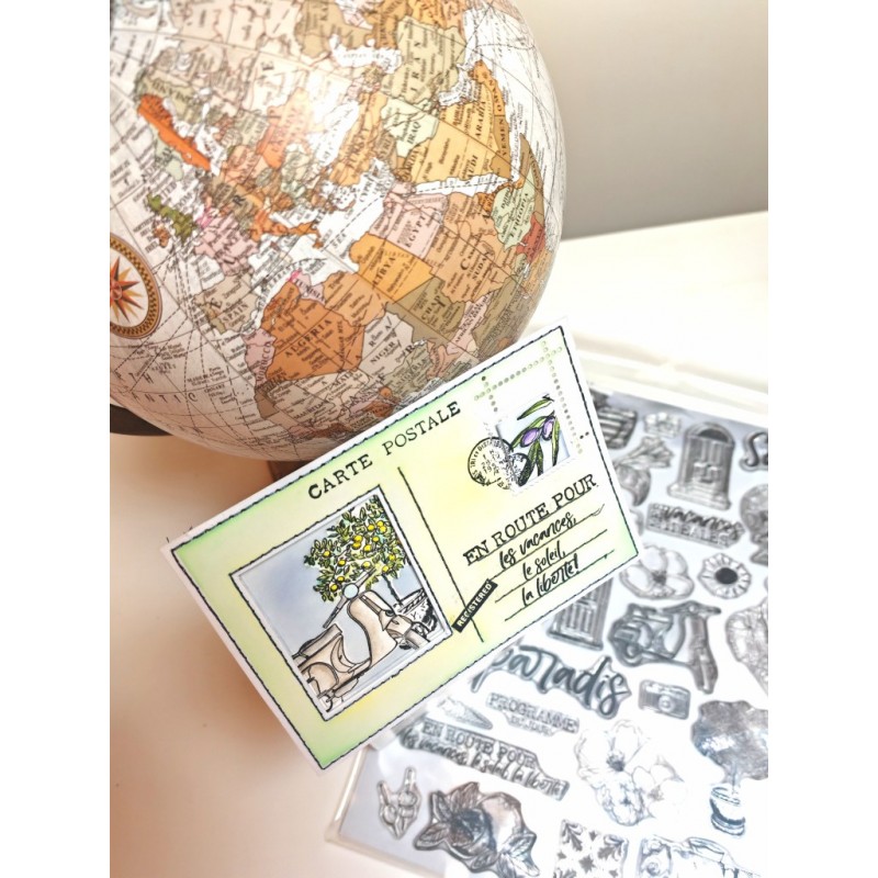 Une carte fait environ 21 cm x 14.5 cm, avec un cadre intérieur