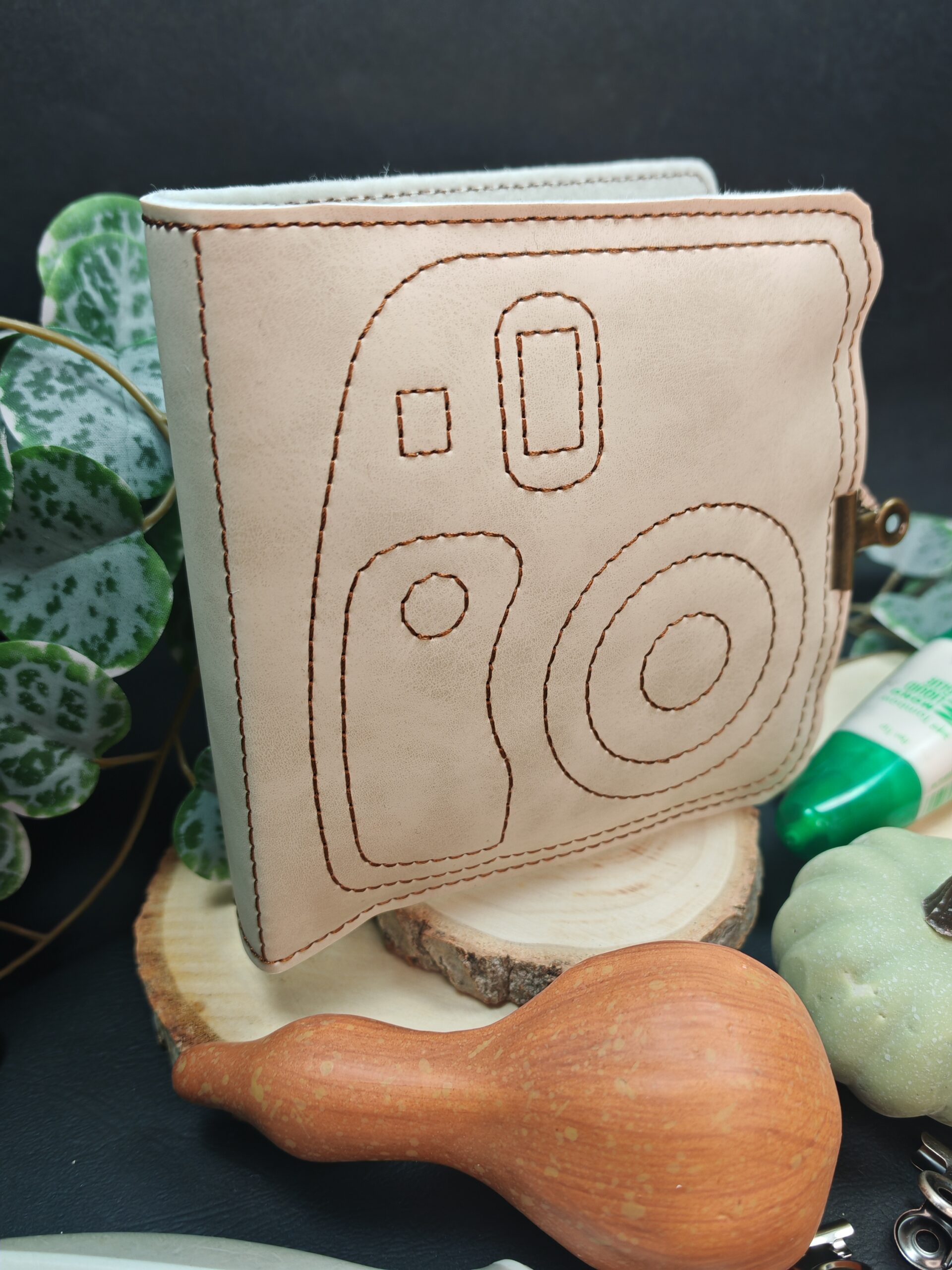Structure d’album polaroid grand format 13×13 de couleur beige avec fil marron – attache incluse.