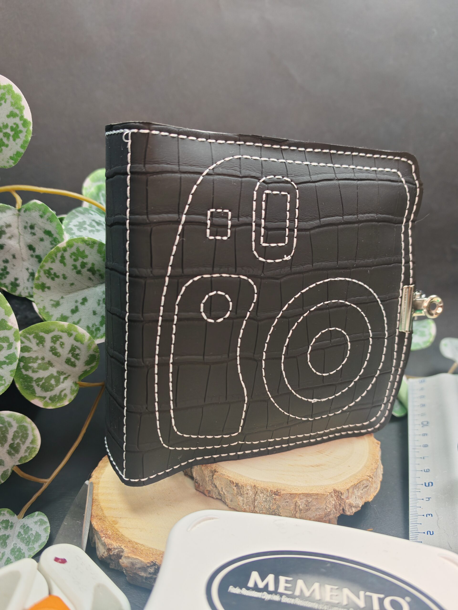 Structure d’album polaroid grand format 13×13 – couleur noir croco avec fil blanc- attache incluse – matière simili cuir