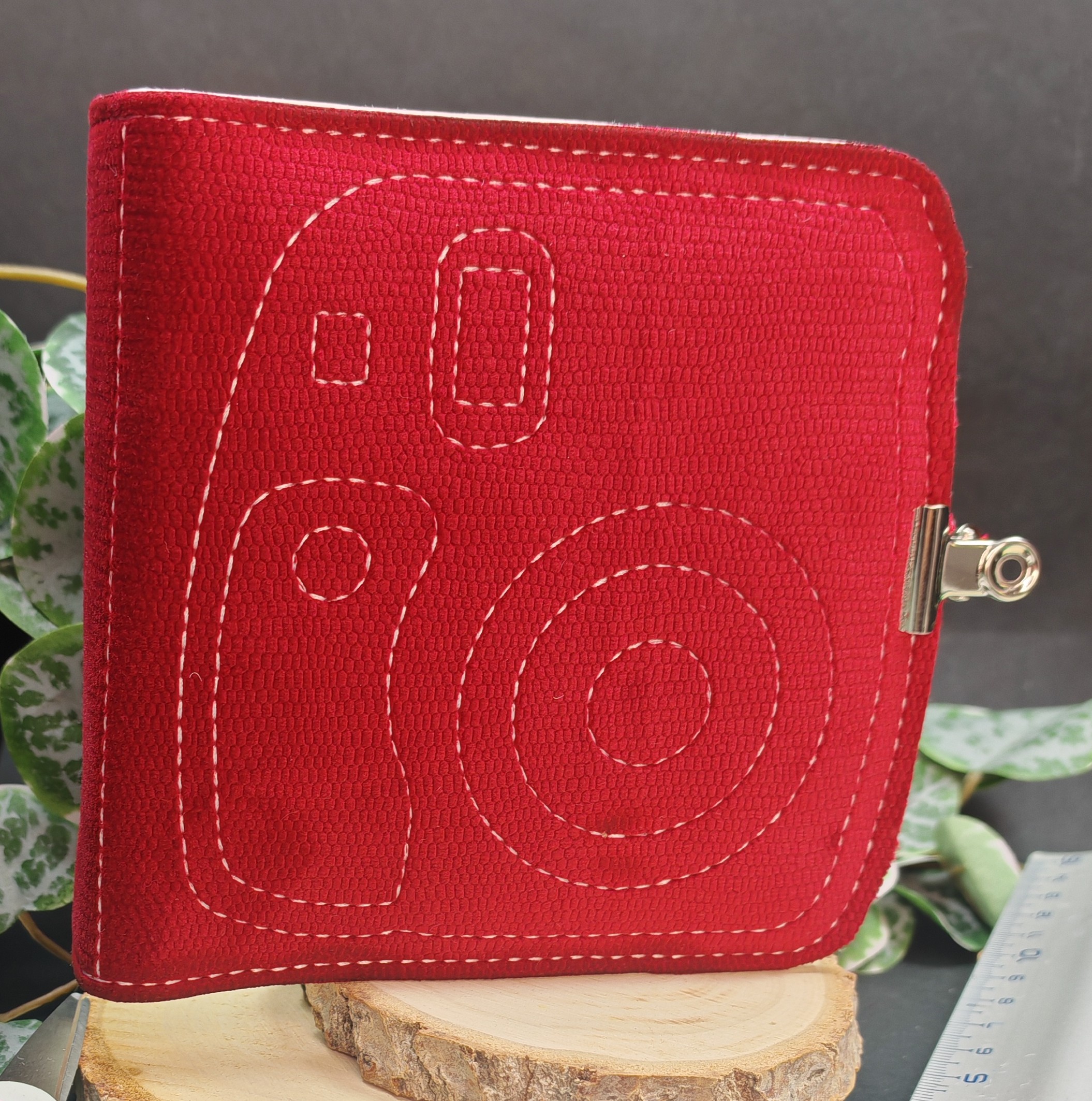 Structure d’album polaroid grand format 13×13 de couleur rouge velours avec fil blanc – attache incluse.